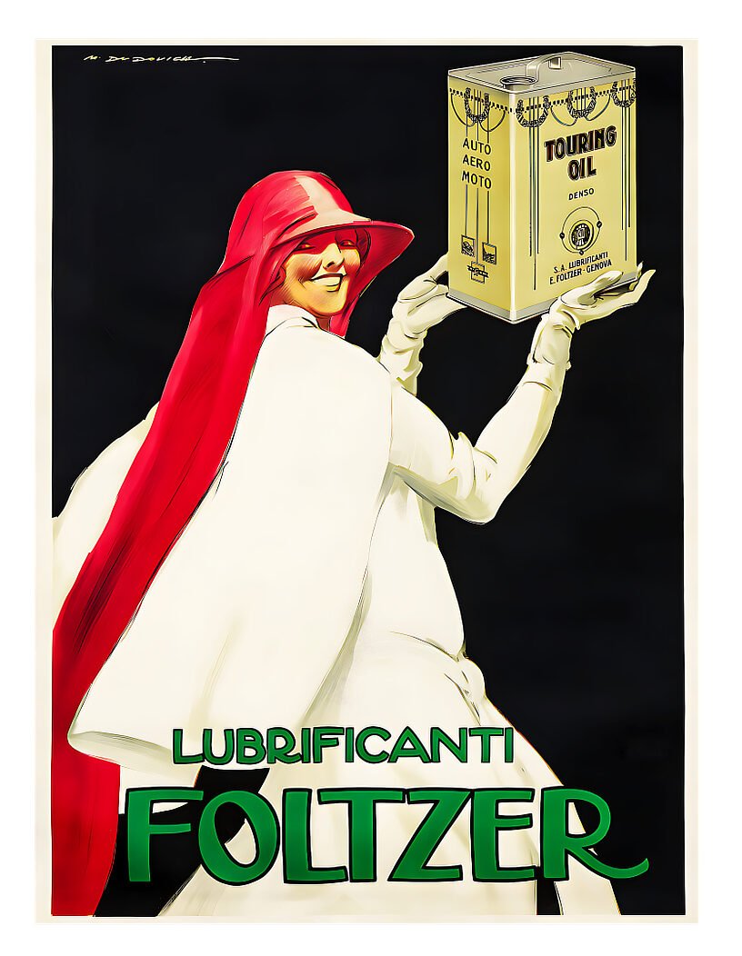Step back in time with this exquisitely restored 1924 Folzer Lubricant Motor Oil poster by the legendary Marcello Dudovich. Known for his bold Art Deco style, Dudovich’s work captures the elegance and dynamism of early 20th-century advertising. This poster is a celebration of automotive history and Italian design, making it a perfect addition to any vintage collection, garage, or home decor.